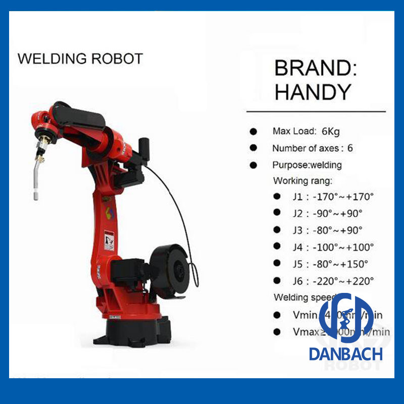 Danbach production Welding robots are industrial robots engaged in welding (including cutting and painting). The Industrial Robot is a versatile, reprogrammable Manipulator with three or more programmable axes for industrial automation. Welding robots are equipped with welding pliers or welding (cutting) guns on the end flanges of industrial robots so that they can be welded, cut, or thermally sprayed.
